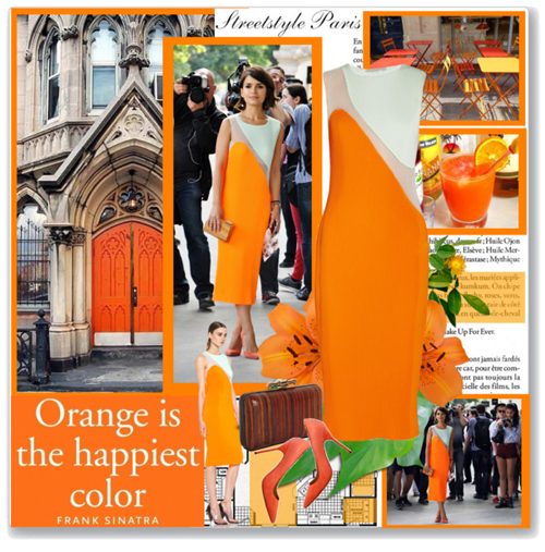 Самое простое решение – это черные или белые аксессуары к оранжевому платью. Насыщенный ярко-оранжевый – (кстати, весной и летом 2015 один из модных цветов – мандарин) – цвет более чем самодостаточный.