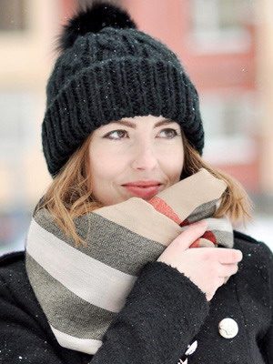 Наиболее простой – сделать с его помощью «капюшон». Накиньте аксессуар на голову, выровняйте его концы и аккуратно оберните им шею один или два раза. Сформируйте красивые складки вокруг лица и на затылке.