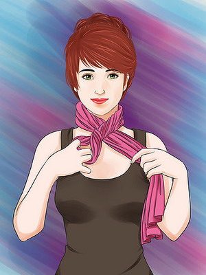 Сложите аксессуар вдвое поперек, оберните им шею, свободные кончики пропустите в образовавшуюся петлю. Расправьте их и либо свободно опустите на грудь, либо оберните шею еще раз, закрепив их на затылке. У вас получится подобие элегантного снуда.