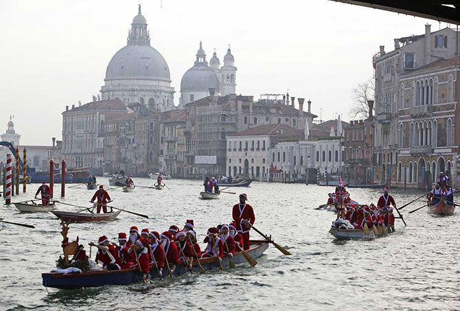 Вообще, в эти дни наблюдается засилье Санта-Клаусов по всему миру. Венеция, 20 декабря 2014.