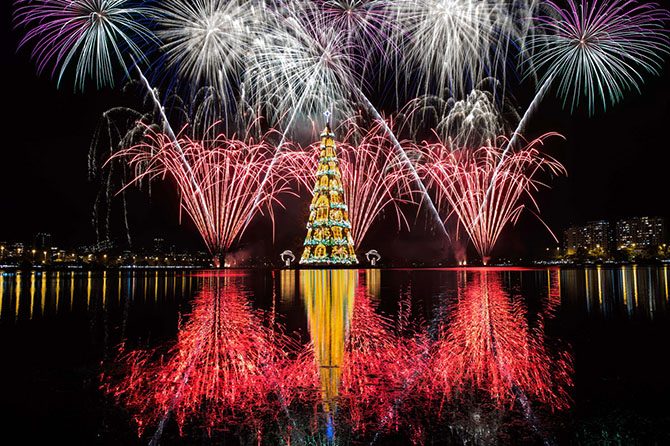 85-метровая плавучая елка в Рио-де-Жанейро, Бразилия, 29 ноября 2014.