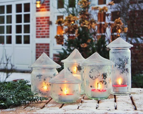 Ледяные чаши послужат оригинальным обрамлением для небольших тепловых свечек.