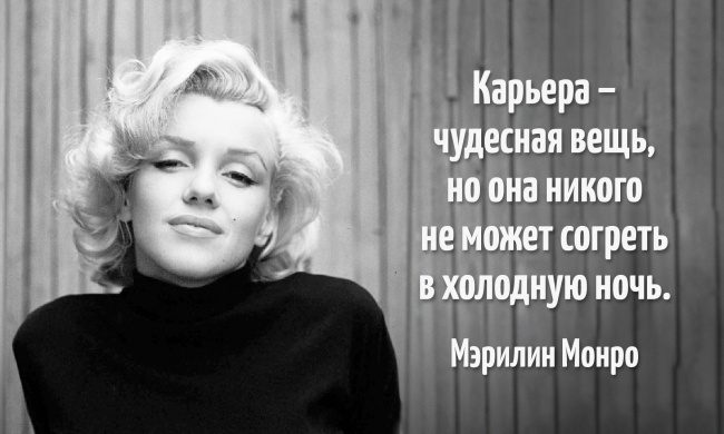 Карьера — чудесная вещь, но она никого не может согреть в холодную ночь. Мэрилин Монро