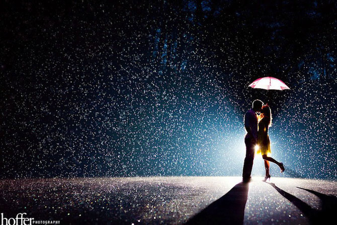 Дуэт фотографов Hoffer Photography прославился тем, что смело экспериментирует с природными явлениями. Эми и Тони Хоффер их не пугают ни дождь, ни ветер, ни снег, не лужи под ногами. Настоящая изюминка их «грозовых» фотографий – специальное освещение, при котором каждая капля, падающая с неба, светится, словно драгоценный камень.