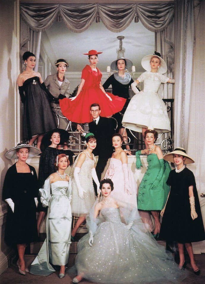 Своей первой коллекцией Кристиан Диор стремился распрощаться с нищетой послевоенного времени и ненавистным ему стилем зазу. «Мода пожелала вернуться к своему исконному назначению, а назначение ее в том, чтобы украшать женщин, помогать им стать красивыми», — пишет Диор в своей автобиографии о коллекции 1947 года «Венценосная Линия», которая благодаря журналистам стала известна всему миру под названием «New Look». Модельер создал образ женщины-цветка – высокая грудь, тонкая талия, словно стебель, и пышная, как венчик, юбка по щиколотку или чуть выше. Несмотря на то, что платья силуэта New Look мгновенно прославили Диора, его дебютная коллекция вызвала множество споров – феминистки обвиняли его в том, что он хочет снова заковать женщин в корсеты, а легендарная Коко Шанель и вовсе называла его работы «главным ужасом конца 1940-х».