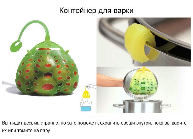 У меня есть устройство (из силикона) для варки на пару, так называемая «Ромашка» — подтверждаю, что очень удобная вещь. Применяю ее в мультиварке-скороварке, но можно в любой кастрюле. И есть вертикальная система приготовления пищи — готовится очень прикольно и, даже можно сказать, похоже на фокус! Ведро для мусора с сенсором видела в интернет-магазине, но цена неподъемная… Мультиварка и без айфона имеет функцию отложенного старта — точно так же, к приходу с работы готовая горячая еда. А вообще, все, что облегчает наш труд — все хорошо, и каждый выбирает то, что ему нравится!