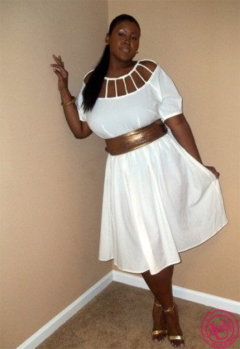 На контрасте с темной кожей белое платье смотрится на полной девушке особенно эффектно. Даже если вы не настолько же смуглая, как эта мулатка, летом в белом стильном платье как на фото вы будете выглядеть потрясающе!