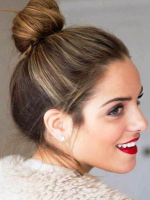Закрепить волосы заколками или шпильками. Для создания высокого пучка сначала надо сделать стильный хвост на макушке с помощью модной резинки (для прочности прически). Намотать хвост вокруг резинки и закрепить волосы шпильками.