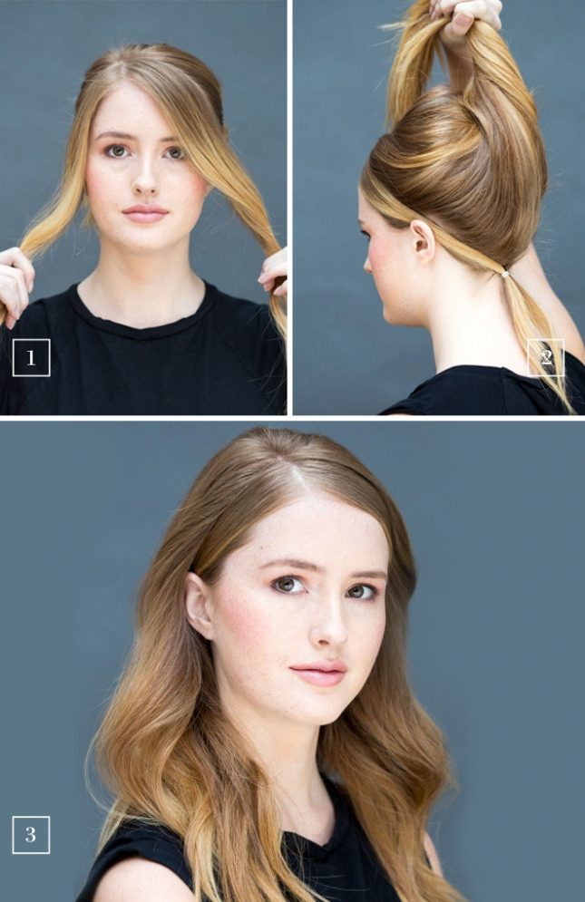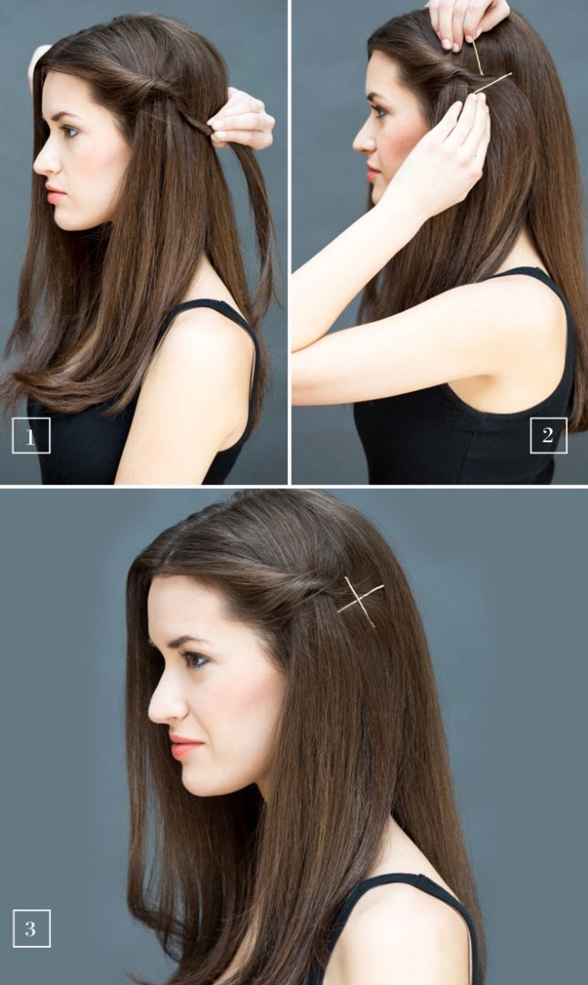 Еще один вариант простой укладки для распущенных волос. На этот раз ваши главные помощники — это «невидимки»: