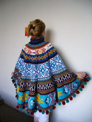 В семидесятые годы эти пончо имели экстравагантный вид, из-за цвета и национального колорита рисунка, так как их привозили из стран латинской Америки, где цвета преобладали ярко оранжевые с зелеными или синими полосами, что вносило дисгармонию в европейский стиль одежды сдержанных коричневых и серых тонов во всей массе.