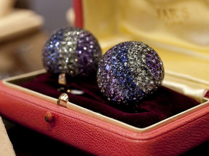 Впрочем, столь щедрые подарки актриса время от времени преподносила и сама себе. Например, однажды она заказала сапфировые клипсы французскому ювелиру Жоэлю Артуру Розенталю. Для их изготовления использовались камни разных оттенков, чтобы передать особый оттенок глаз Элизабет. «Она сказала мне, что её глаза голубые, как мои, иногда зелёные, ну а всем остальным они кажутся фиолетовыми», — вспоминал дизайнер.