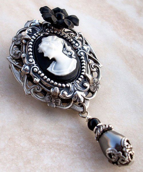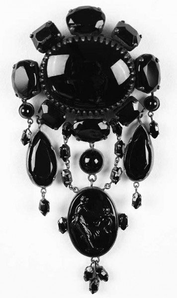 Английская королева Виктория носила траур до своей смерти в 1901 году, около 40 лет. В этот период носить траур в течение половины жизни становится нормой в Англии. Драгоценности королевы Виктории состояли из чёрных брошей, браслетов, колье – в Англии в это время очень вырос спрос на подобные ювелирные изделия. Особенно известны украшения в виде открывающихся медальонов, в которые можно было поместить портрет или прядь волос. Но в то же время для модниц выпускали резные броши в виде цветов и фруктов и другие чёрные украшения – они очень элегантны и вовсе не всегда были траурными. Траур соблюдался в несколько этапов. Соответственно, драгоценности делали чисто чёрного цвета, затем, в период «полутраура» добавлялись камни спокойных меланхолических тонов – серый, лиловый, фиолетовый. Впрочем, в 1880-х годах королева вновь начинает носить также жемчуг и бриллианты. После Первой мировой войны дамам стало не до дорогих украшений, в это время Гудиер изобретает пластик, точнее вулканизированную резину или вулканит. В украшениях вулканит заменит гагат и ими долгое время придётся довольствоваться модным дамам.