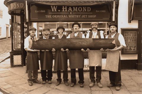 Но больше всего покровительствовала гагату из Уитби сама королева Виктория. После смерти любимого мужа Альберта, который умер от тифа в 1861 г. и был похоронен в часовне Cвятого Георга в Виндзоре, она стала постоянно носить украшения из гагата в память о нём. Во время траура, в соответствии с протоколом, дамы могли появляться при дворе только в украшениях из гагата, что повлияло на искусство резчиков и ювелиров, работающих с этим камнем. В этот момент Джеймс Сторр открывает магазин W.Hamond, который работает до сих пор и является одной из достопримечательностей города Уитби, напоминая о временах «гагатовой лихорадки», когда мастерские располагались чуть ли не во всех домах Уитби. Кстати, цены для Великобритании не такие уж высокие – можно купить небольшую красивую подвеску в среднем за 120 евро, браслет от 400, но много и очень дорогих шедевров, в том числе викторианских копий.
