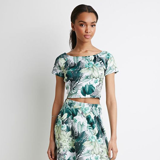Ах, как жаль, что кроп-топ с таким же летним принтом и пальмовым настроением продается отдельно.