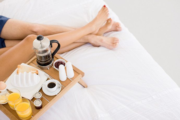 Завтрак — основа любого рациона, в том числе и во время диеты. Ученые доказали, что утренний прием пищи ускоряет обмен веществ, и потому забывать о нем ни в коем случае нельзя. Возьмите за правило завтракать не спеша и не отвлекаясь — за красиво сервированным столом, в кругу семьи или с любимым в постели. Идеальным вариантом может стать овсяная каша с орехами и семенами льна, которая способствует стабилизации уровня сахара в крови — а значит перепады настроения, повышенная тревожность и раздражительность обойдут вас стороной в течении дня.