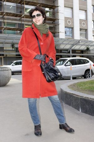 Я тоже не согласна с тем, что дамы на фотографиях-икона стиля.У дамы на 2 фото слишком темный шарф для черной, пусть даже не очень яркой куртки, так что колорит не очень.3 фото.Не должна полная женщина носить такой принт, да еще в коротком варианте.Очень полнит.Выглядит на 58-60 размер, а могла бы на 50, если бы однотонное пальто и хорошая длина.На 4 фото все в черном.Где женственность? Колорит ей не идет.На последнем фото женщина вроде бы и стройная и не плохо сохранилась, но в таком возрасте девченочью длину выше колена уже не стоит носить-старая девочка, только подчеркнет возраст.