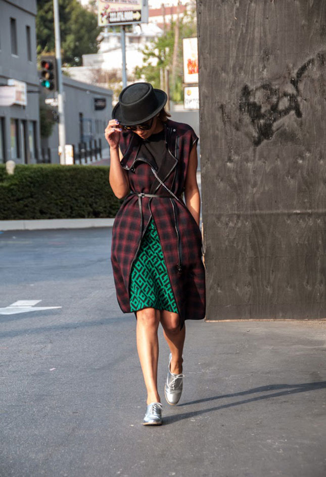 Шорты и кожаная куртка могут показаться довольно избитым сочетанием, но стоит добавить разные узоры и шляпу…