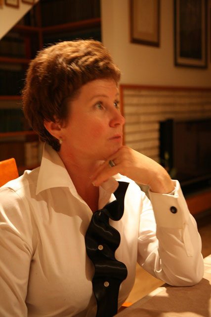 Моя подруга, Лена ешё раз, в той же рубашке Brooks Brothers и галстуке собственного изготовления.