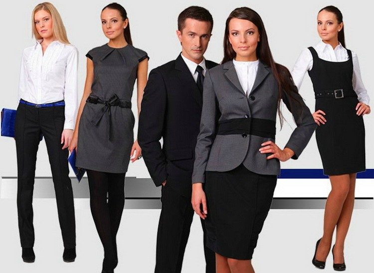 Обычные требования к одежде: опрятность, приглушенные цвета, запрет на ношение спортивной одежды и т.д. На практике данные требования разрастаются.
