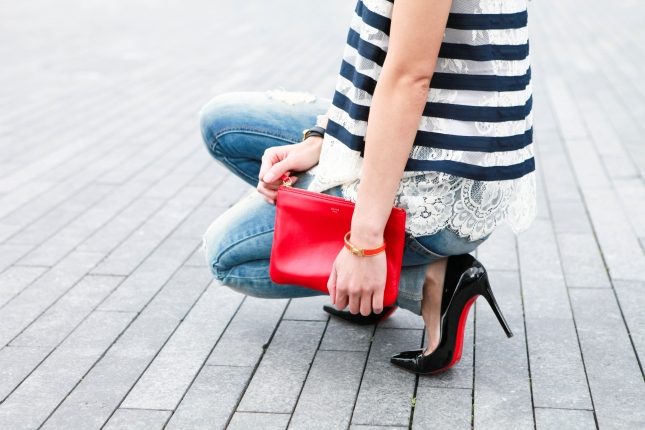 Поклонницы роскошных туфелек изощряются как могут: самый популярный вариант, конечно же, это двухсторонний маникюр в легко узнаваемой палитре.