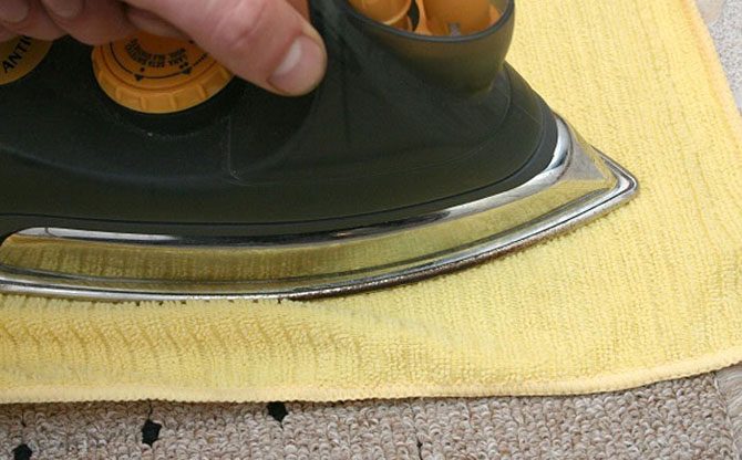Простое средство, состоящее всего лишь из уксуса и воды (1:2), удивительным образом удалит все пятна на ковре. Весь секрет кроется в утюге. Через пульверизатор на загрязнённое место наносится смесь, накрывается влажной тряпкой и гладится горячим утюгом секунд 30. Если нужно, то можно процедуру повторить.