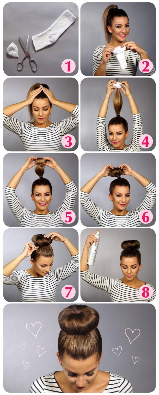 Сногсшибательный пучок получится, если при его закручивании использовать носочек.