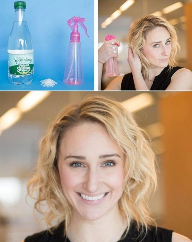 Завитые локоны часто уже в середине дня смотрятся неаккуратно, но расчесать волосы — значит перестать быть кудрявой. Чтобы сохранить кудряшки, можно использовать обычную соленую воду. 1 чайную ложку морской соли размешать в 0,5 л минеральной воды и залить в баночку с распылителем. Соль закрепит кудри и создаст эффект мокрой прически.