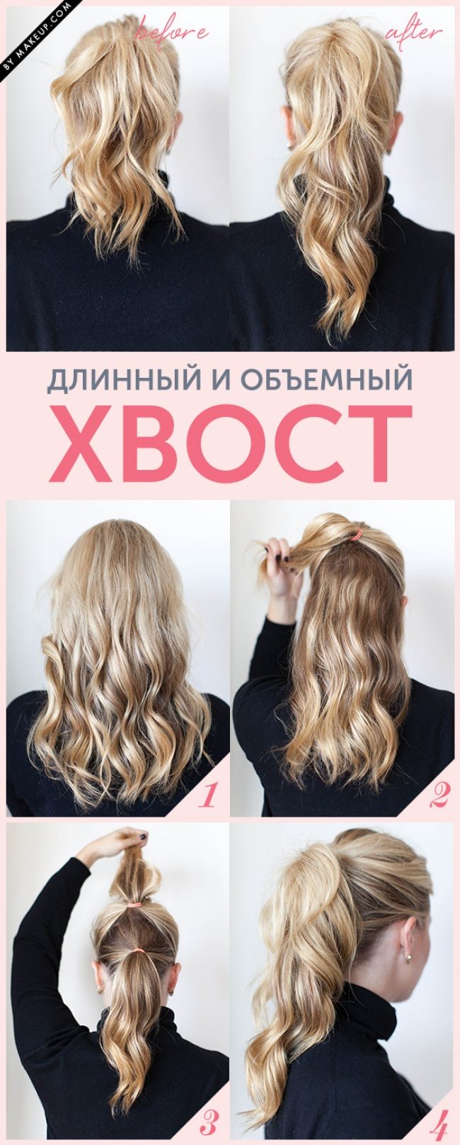 Если вы хотите визуально удлинить волосы в конском хвосте, просто сделайте вместо одного хвоста два. Один расположите на макушке, другой — ниже.