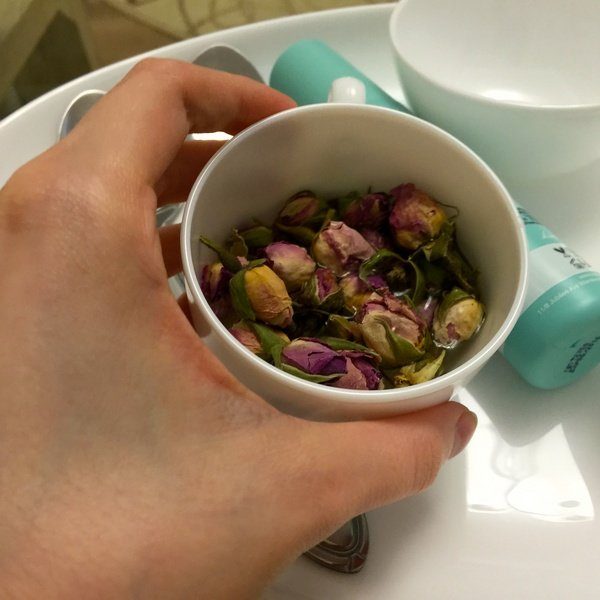 Такой пилинг вы можете обогатить и парой капель любимого масла легкой текстуры. Мы добавили в пилинг масло шиповника, обладающее необычайно приятным запахом и хорошими питательными свойствами, и настой из бутонов розы, он смягчает запах масла шиповника, а также увлажняет кожу головы.