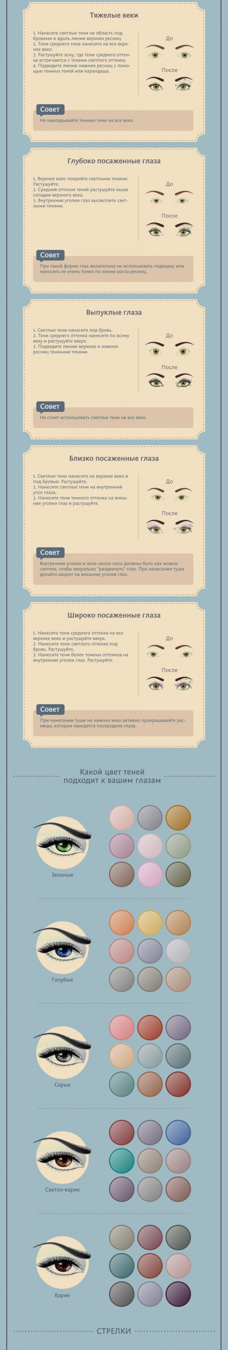 В огромном мире под названием «макияж» есть столько секретов и особенностей, от которых голова идет кругом. Эта инфографика будет вашей палочкой-выручалочкой. В ней собраны крутые советы, которые помогут вам быть неповторимой, как каждый день, так и в особенных случаях. Берите на заметку и будьте безупречны!