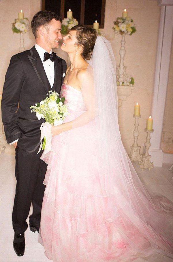 5. Кейли Куоко (Kaley Cuoco), Джессика Бил (Jessica Biel), Риз Уизерспун (Reese Witherspoon) не пожелали выходить замуж в тривиальном белом и выбрали для свадьбы розовый и его оттенки. Джулианна Мур (Julianne Moore) надела платье Prada лавандового оттенка, а ее супруг Барт — рубашку и галстук в тон.