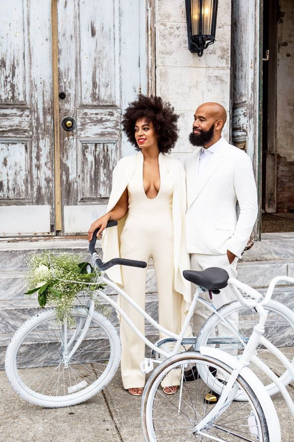 8. Сестра Бейонсе (Beyonce) Соланж Ноулс (Solange Knowles) выбрала комбинезон кремового оттенка Stéphane Rolland. Кстати, на ее свадьбе, вопреки традициям, абсолютно все гости были в белом.