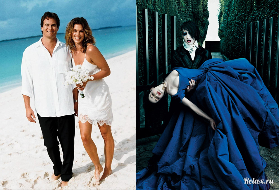 Школьная форма Мэрилин Монро, разрисованная фата Анджелины Джоли, готическое платье Диты фон Тиз и другие самые оригинальные свадебные наряды звезд.