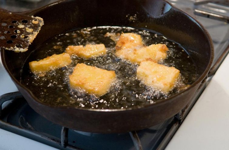 Чтобы масло при жарке не брызгалось, можно дно сковородки слегка присыпать солью