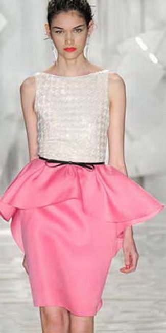 Контрастное сочетание цветов в таких моделях – это отдельная и очень многообещающая тема. Здесь для модельеров представлены широчайшие возможности, поэтому можно не сомневаться – появление в коллекциях нового сезона платьев с баской произведет настоящий фурор!