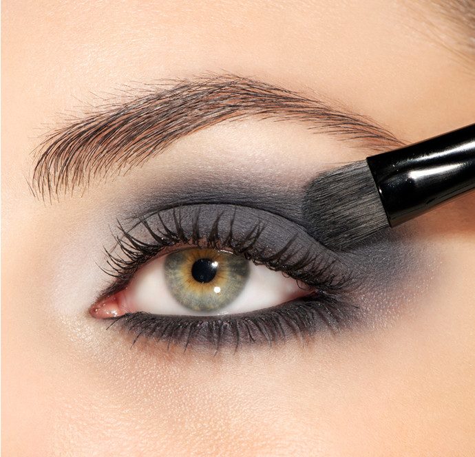 Для серой радужки выбирайте холодные тона (серебряный, лавандовый). Из теплых лучше всего смотрятся мерцающие «слоновая кость» и «шампанское». Если хочется темного и томного макияжа, смело берите синий.