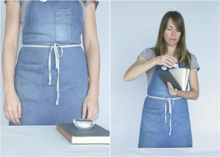 Удалите затхлый запах старой книги, почистив ее страницы пищевой содой. Оставьте ее на 3-4 дня в открытом пакете пред тем, как стряхнуть соду.