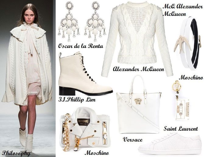 Белый актуален для всех предметов гардероба, будь то тёплый свитер, шарф или элегантная шляпа. И кстати, их можно носить разом! Наиболее актуальные стилевые прочтения — романтика и классика.