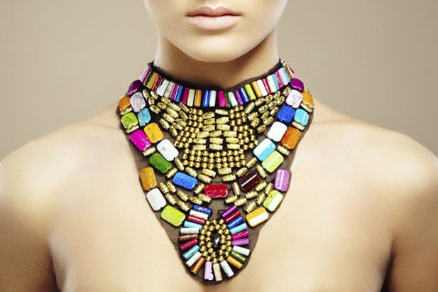Неважно, насколько сильно вы любите яркие цвета, но если речь идёт о бусах, то такое украшение всегда выглядит дешево. Единственный выход — уменьшать размеры бусин, а лучше вообще перейти на бисер. Выбирайте многоуровневые украшения, в которых используются мелкие бусины в качестве акцентов. К сожалению, крупные бусины могут даже прибавить вам возраста.