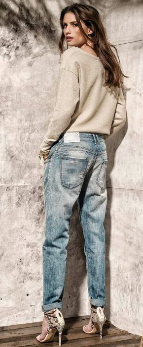 «Убитые» джинсы снова на пике моды. В многочисленных коллекциях модной одежды, созданных дизайнерами и модельерами с мировым именем, представлены модели потертых и рваных джинсов, которые выглядят очень стильно и дерзко. Удачный дуэт – джинсы-рванки и туфли на высоком каблуке. Созданный образ выглядит очень утонченно и женственно, тая в себе кокетливость и неповторимый шарм.
