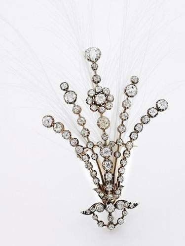 Эгрет мог быть и без перьев, в виде простой броши с элементами в стиле En Tremblant (ювелирный термин – от французского слова «дрожать», означающий, что некоторые фрагменты украшения делались подвижными, для особенно яркого отражения света свечей).
