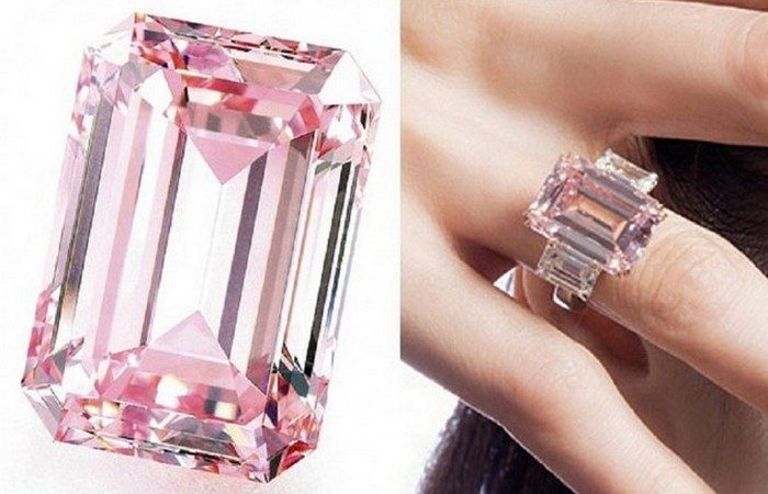Кольцо с розовым бриллиантом ярко-розового цвета весом 24,78 карата было приобретено за $ 46 млн в 2010 году британским миллиардером Лоуренсом Граффом. Что интересно, г-н Графф даже не окончил среднюю школу и работал дворником, прежде чем стал крупнейшим в мире дилером бриллиантов и драгоценных камней.