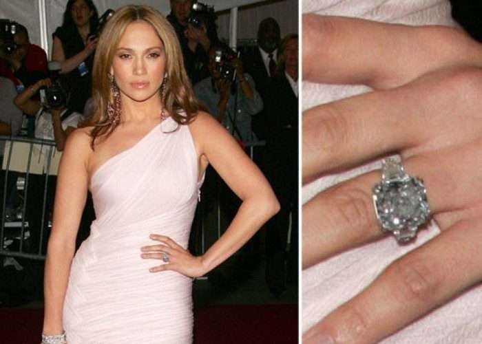 Это не секрет, что актер, певец, танцор, продюсер и предприниматель Дженнифер Лопес несколько раз была замужем. Незадолго до того, как Лопес разорвала отношения с Беном Аффлеком, он подарил ей кольцо с довольно внушительным розовым бриллиантом. Когда Дженнифер обручилась с певцом и актером Марком Энтони, он выбрал Джей красивое кольцо Neil Lane, инкрустированное голубыми бриллиантами весом 8,5 карат.