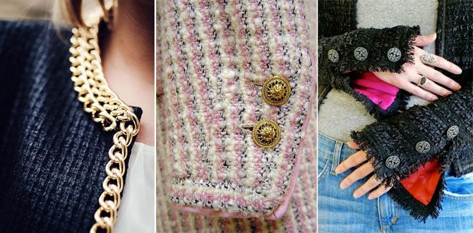 Многие дизайнерские вещи очень просты по фасону. Очень легко сделать свои вещи дороже просто поменяв обычную фурнитуру на более изысканную. Замените простые пуговицы своего твидового жакета на резные металлические или отделайте лацкан пиджака стильным кантом и т.д.
