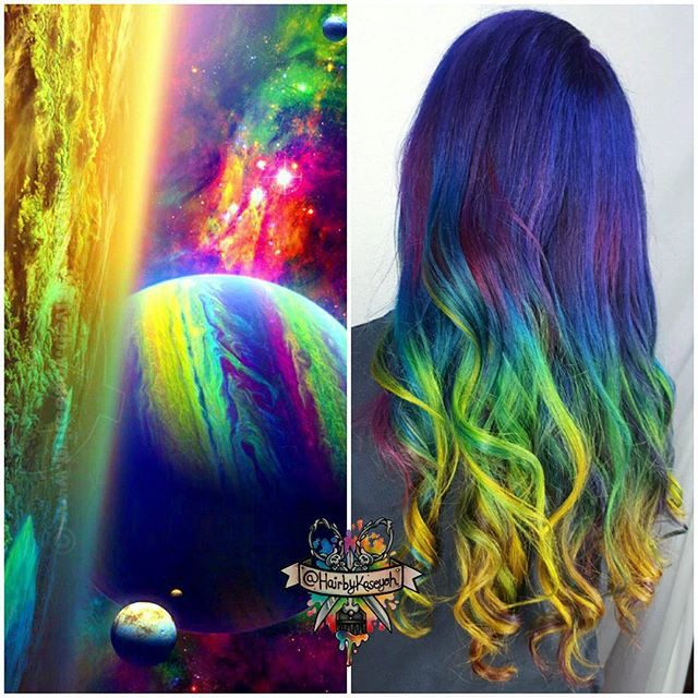 Теги в Инстаграме #galaxyhair и #spacehair покажут вам несметное количество вариаций на любой вкус.