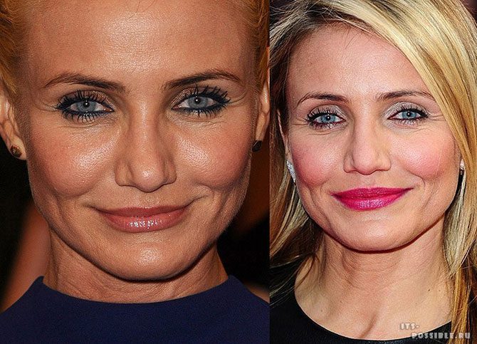 Овал лица. Поплывшие очертания – во многом, конечно, результат наследственности и… образа жизни. Глядя на лицо Кейт – вопросов о том, что жизнь была бурной – не остаётся. Провисающая кожа в районе подбородка – не самая приятная для лица история и если такую проблему не начать решать вовремя, то к 45 это будет более проблематично. Как ни странно, в таких случаях хорошо помогает гимнастика лица. Она не заменит вмешательства специалиста, но сделает свою работу честно.