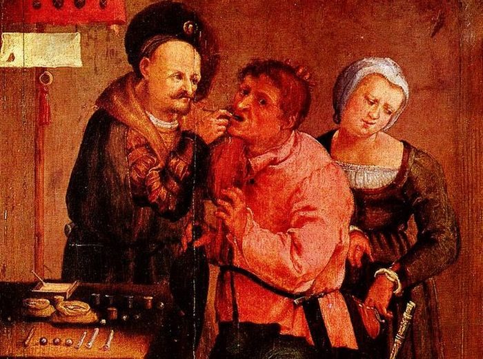 Тряпка во рту как средство против кариеса.