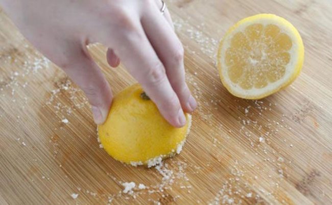 Соль с лимоном — замечательное средство для очистки деревянных разделочных досок. После этого просто сполосните их под струей воды.