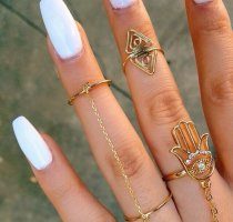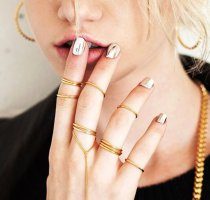 В последние сезоны особым шиком стало считаться ношение колец… на ногтях и серединах фаланг. Хотя, справедливости ради, стоит отметить, что и традиционное ношение этих ювелирных украшений пока не кануло в бездну. И все же, на подиумах, модных тусовках и глянцевых фотосессиях сегодня все чаще можно встретить несколько необычное ношение колец, полностью закрывающих своими золотыми и серебряными пластинами, ногти модниц.