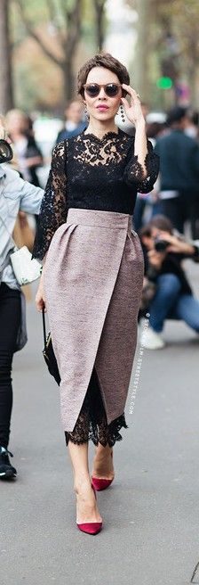 Юбка-карандаш, юбка-трапеция, брюки или джинсы с завышенной талией будут хорошо смотреться в паре с заправленной в них блузой. Выбирайте вещи в одной гамме если хотите максимально вытянуть силуэт и заодно казаться немного выше. Топы и платья с завышенной талией тоже хорошо скрывают недостатки фигуры.